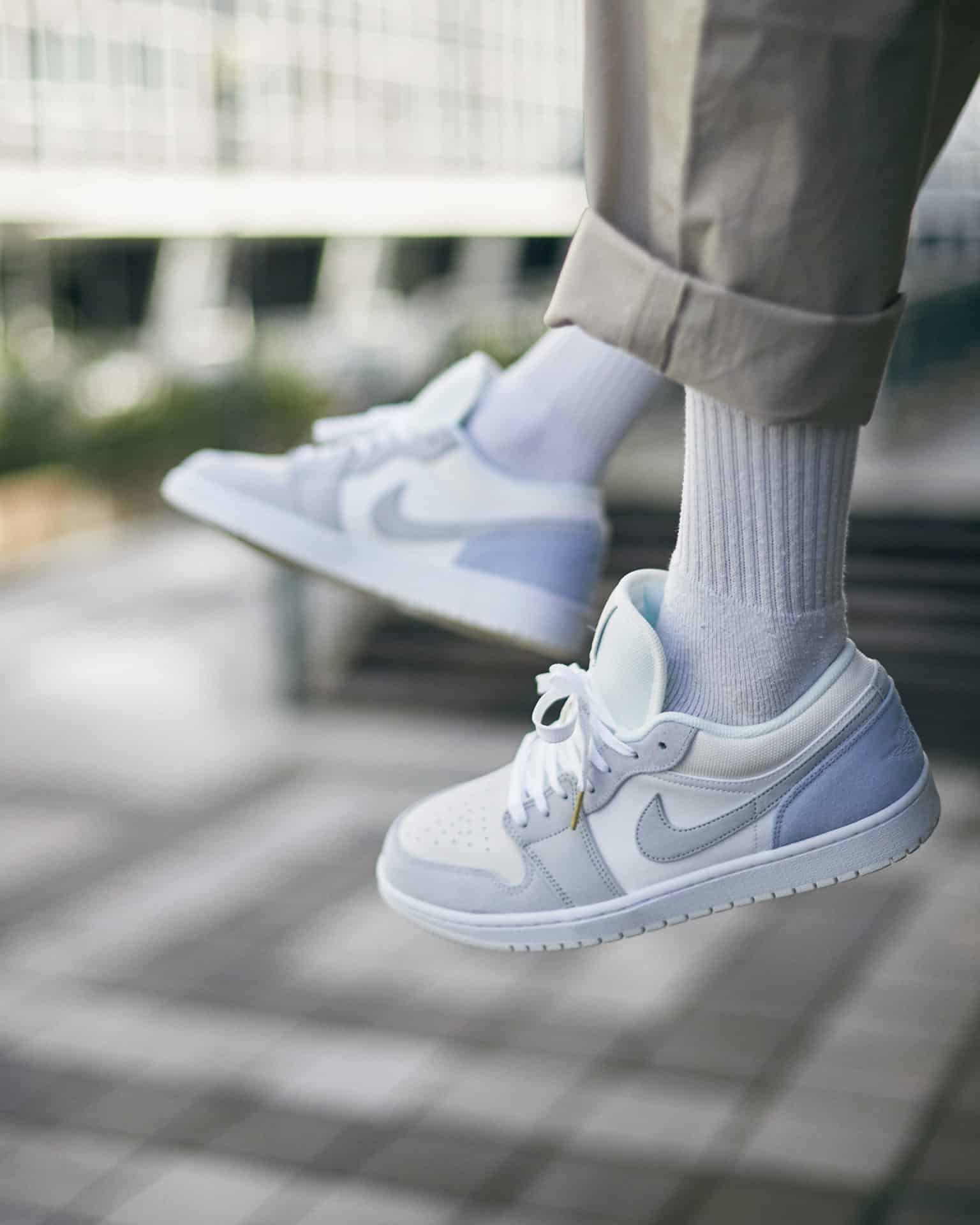 Thiết kế của AJ1 Low “Paris” được lấy ý tưởng từ kiến trúc sa thạch cổ điển và bầu trời trong xanh của Paris, Pháp. Bạn sẽ nhận thấy vẻ đẹp pha trộn giữa ba màu xanh phấn, màu xám và màu trắng ở phần trên đã tạo ra sự rung cảm tinh tế hiếm có, làm người dùng cảm giác như bản thân đang hoà mình vào đường phố Paris thời thượng.